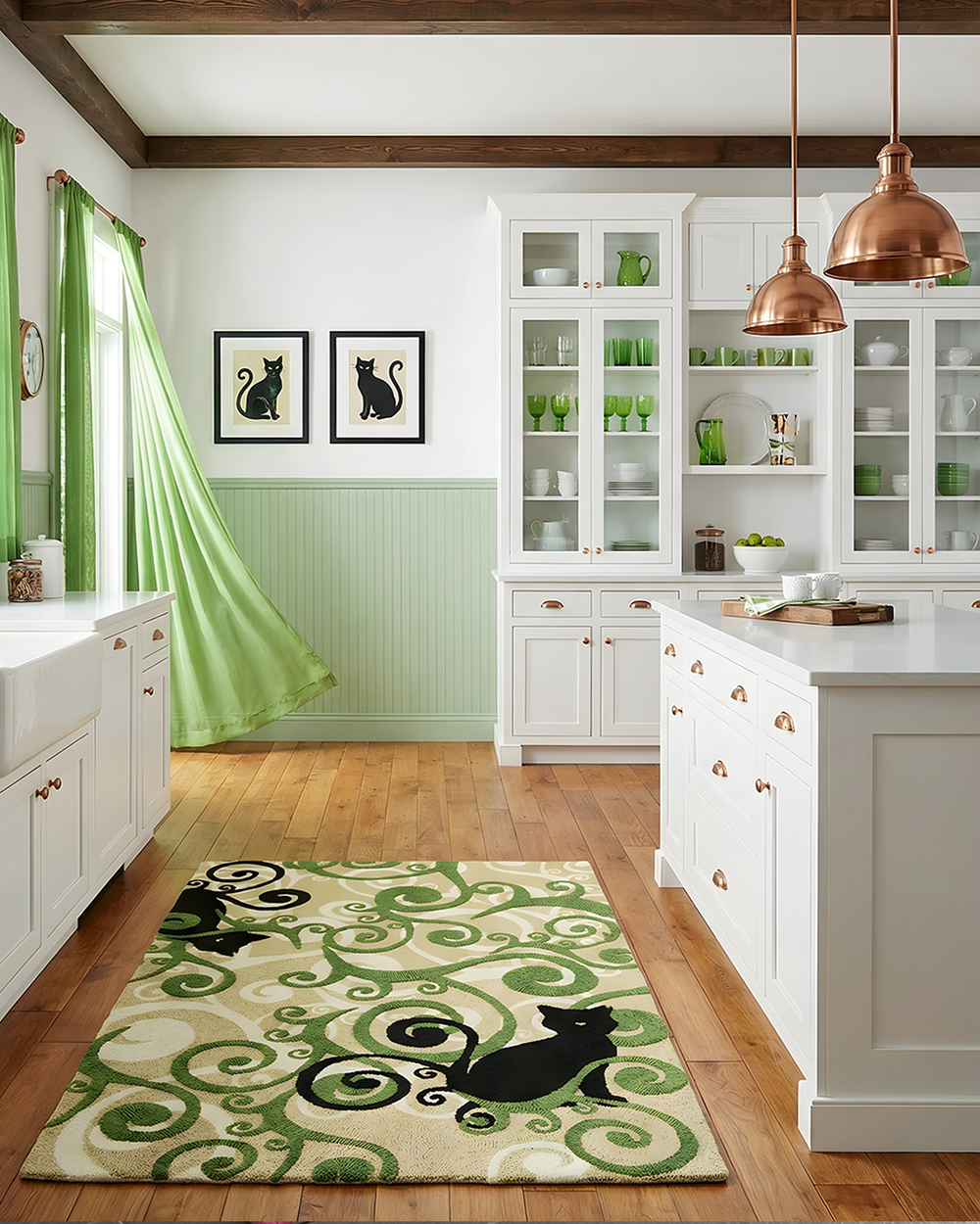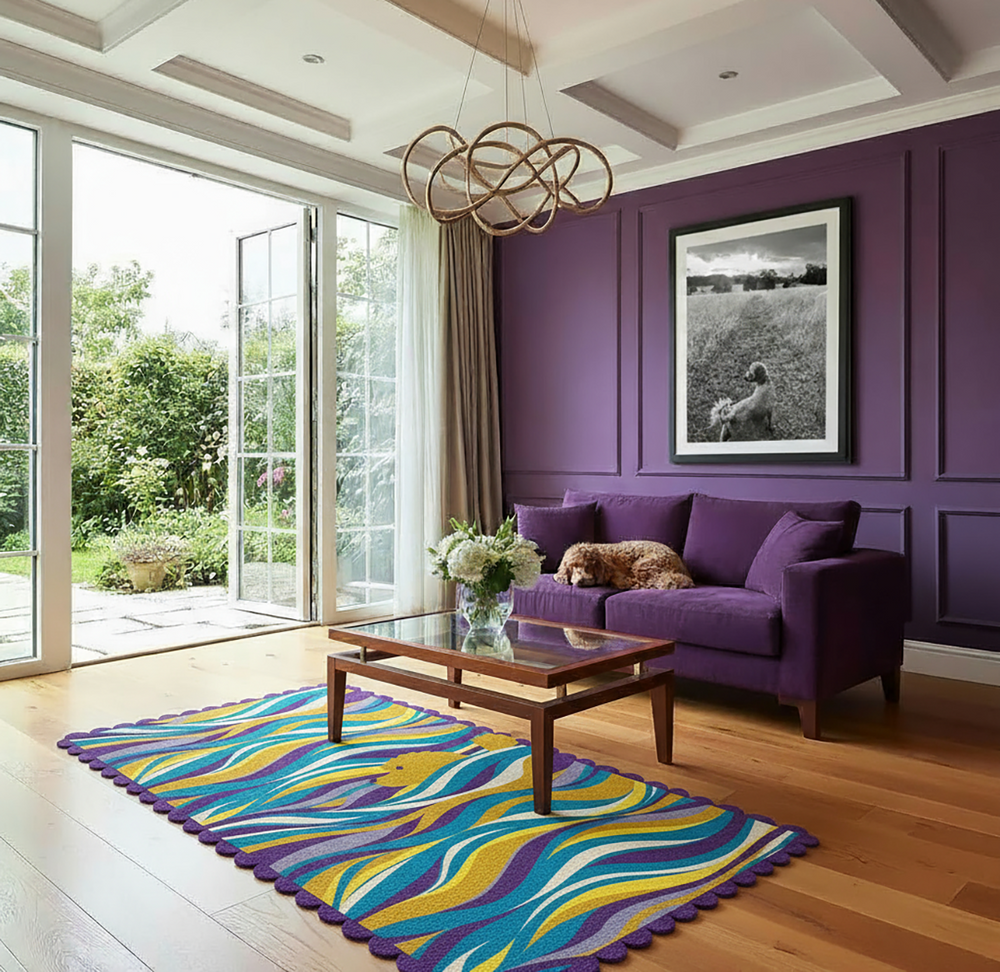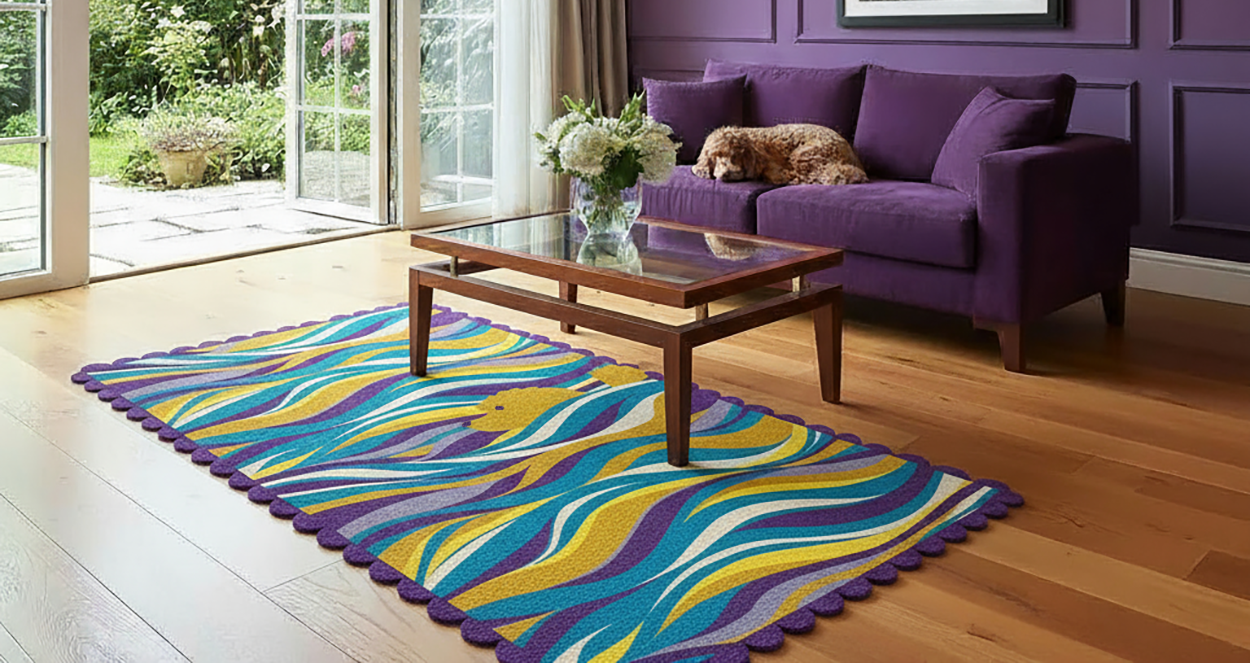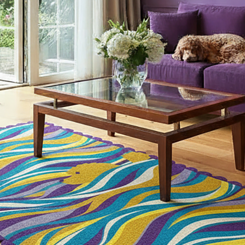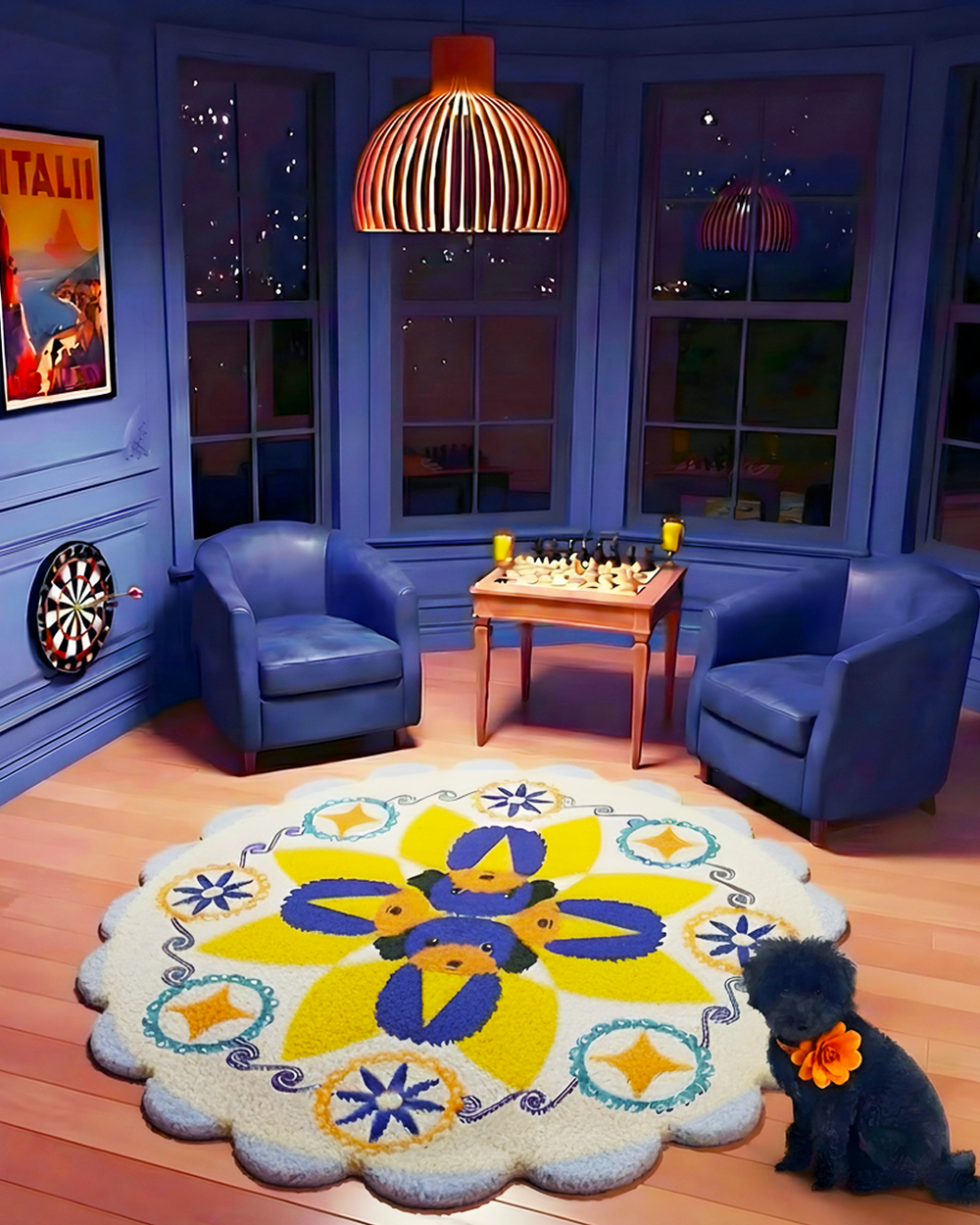 Look through examples of custom pet rugs created for special people who love special pets and living and working spaces that sing with color and connection.