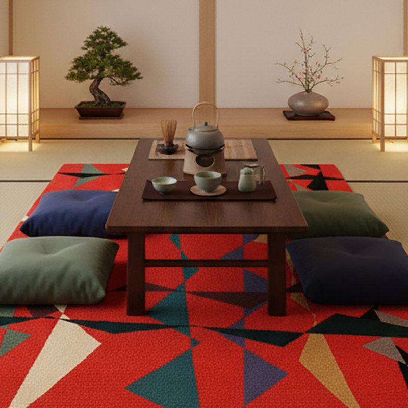 This modern rug, Abstract, was inspired by Japanese art images while working on a design project for a Japanese company. It also pays homage to Henri Matisse’s paper cut-out period and the Japanese paper folding craft or origami.