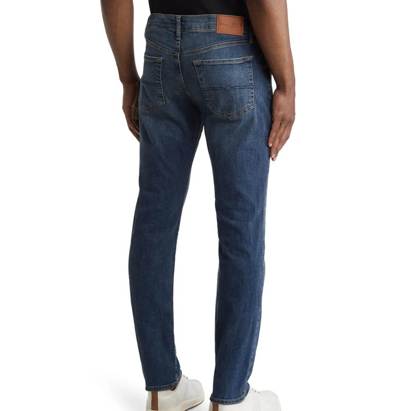 Classic fading at the thighs brings lived-in appeal to straight-leg jeans designed with a slimmer fit to show off your toned physique.