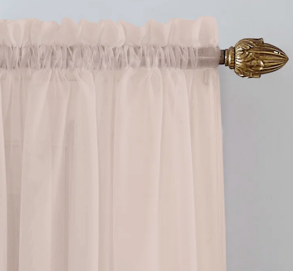 This sheer softly diffuses natural light while enhancing the beauty of your home décor. Crafted from polyester, this sheer curtain adds the slightest bit of privacy and filters out a bit of light while still keeping your space bright and sunny. It's easy to add to your preferred curtain rod (sold separately) thanks to the rod pockets at the top. Keep in mind that this is a single curtain panel, and you'll have to purchase 2 to get the panel pair. Plus, it's machine washable.