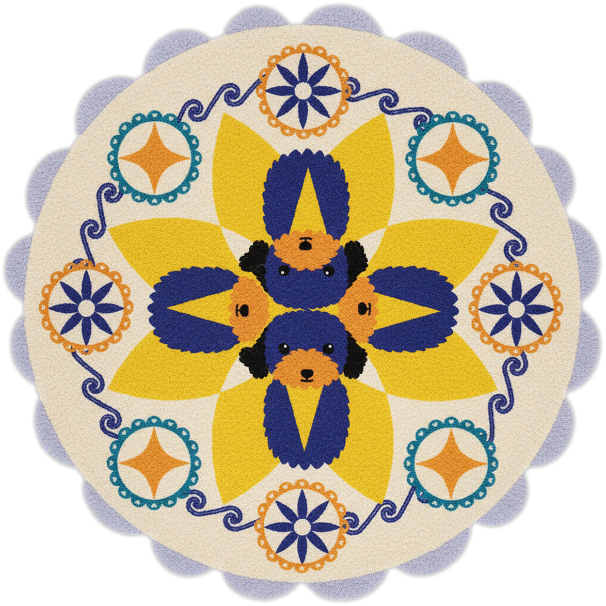 First your artwork is created and approved. I'll request multiple photos of your pet, showing their full body and face. If we're incorporating or referencing a favorite toy or place, you share those images also. Then you pay your artwork deposit and I'll create your custom art, designed specifically to work well and look good as a rug. One round of revisions is included. More can be done for an additional fee.